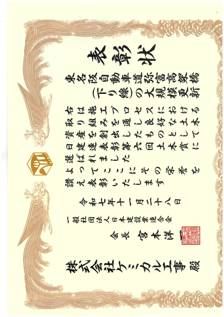 今回の表彰は、「東名阪自動車道弥富高架橋(下り線)の大規模更新工事」